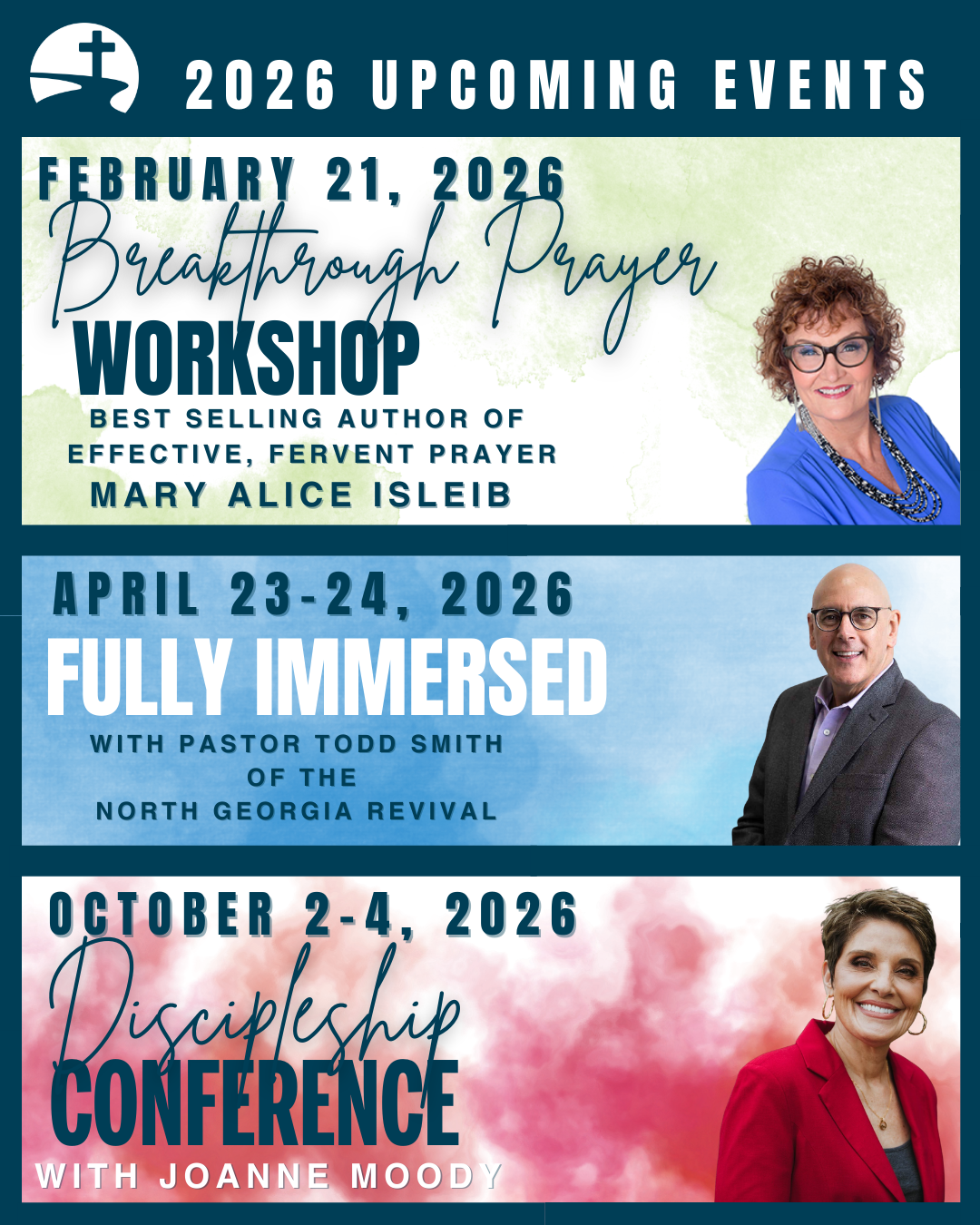 Mark your calendars now and get ready for a teaching that will challenge you to go deeper in your prayer life. This workshop will give you practical tools on applying different types of prayer that you read about throughout the Bible, so you can begin to walk and experience God's power in new ways in your own personal time of prayer. This day is for everyone! You don't want you to miss it! Register today.